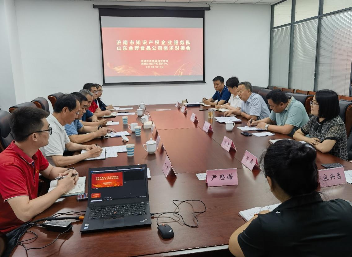 近日,济南市知识产权服务队联合济阳区市场监管局,针对山东金晔农法食品有限公司知识产权需求,组织召开专题对接交流会,为企业出谋划策、答疑解惑。