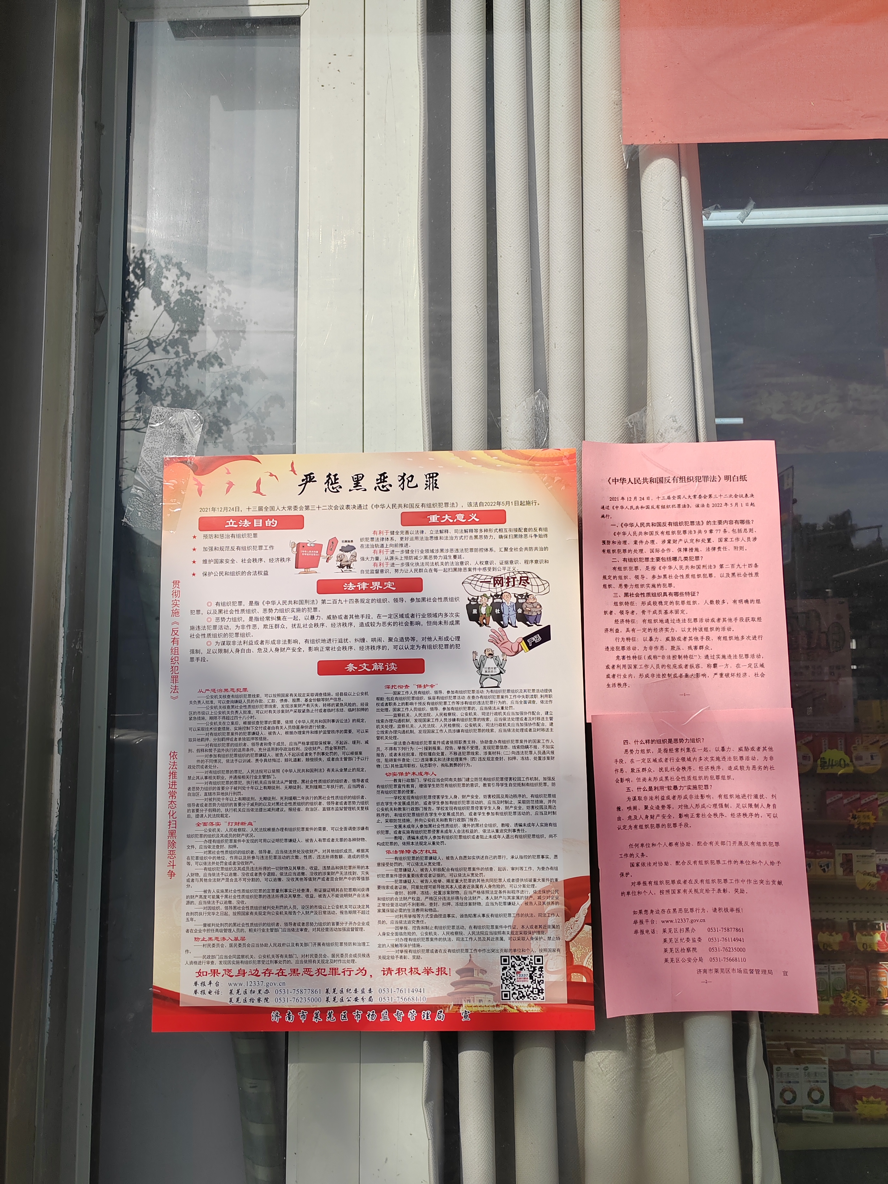 活动中,局机关及市场监管所执法人员走进广场,深入集贸市场、超市、药店、建材市场、社区等,通过悬挂横幅、张贴《中华人民共和国反有组织犯罪法》宣传海报、发放明白纸等方式,向群众、商户宣传《中华人民共和国反有组织犯罪法》的主要内容,现场与广大群众面对面接触,进一步讲解什么是黑恶势力、黑恶势力的危害以及扫黑除恶专项斗争的深刻意义等内容,同时,结合欺行霸市、垄断经营、制售假冒伪劣商品等典型案例,以案释法,让群众深刻认识到有组织犯罪的严重危害性和依法打击的必要性,引导群众自觉遵守法律,经营业户守法经营,增强群众法治观念和防范意识。执法人员积极引导群众、商户在发现欺行霸市、垄断经营等涉黑涉恶线索时第一时间举报。发放的海报及明白纸印有涉黑涉恶线索举报平台和举报电话。