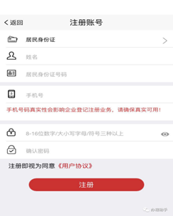 点击登录界面上「新用户注册」按钮,进入注册账号界面