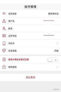 进入账号管理界面,显示注册信息