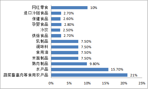 4.“最担心”食品安全问题:蔬菜畜禽肉等食用农产品、水产品和网红零食