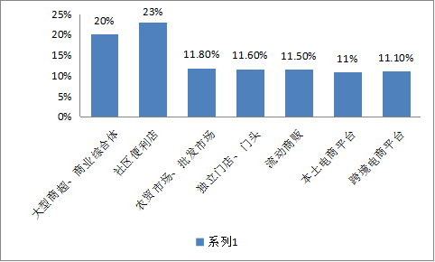 6.“最经常”的购买方式或渠道:社区便利店和大型商超、商业综合体